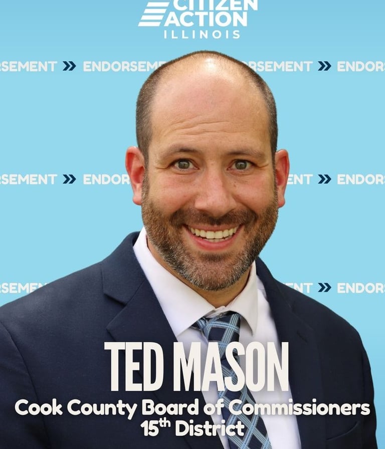 President Toni Preckwinkle said, "I am proud to support Ted Mason for Cook County Commissioner. Since 2018, his work at the County has helped our efforts to provide millions in grant assistance to our small businesses in the northwest suburbs and to erase $79.2 million in medical debt for the 15th District. I look forward to having his leadership on the County Board."